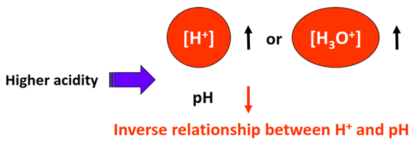 Inverse Relationship Between pH and \( \mathrm{[H^+]} \)