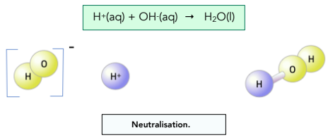 - \( \mathrm{H^+} \) ions collide with \( \mathrm{OH^-} \) ions