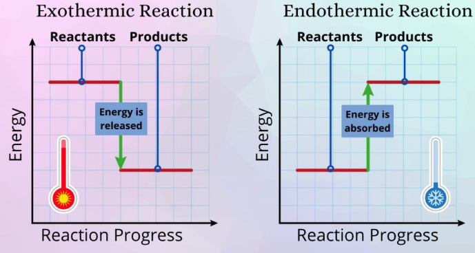 - \( \mathrm{\Delta E < 0} \): more energy released → exothermic