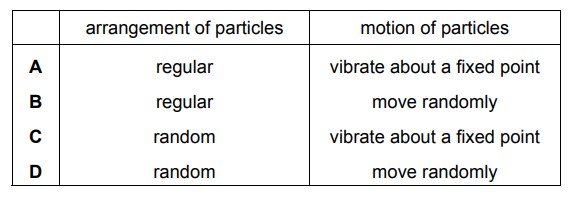 - Particles are packed in a regular, fixed arrangement (statement 1 is correct, 2 is incorrect as that describes liquids/gases)