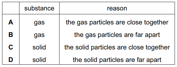 Thus, only the gas (option B) meets both criteria—compressibility due to large interparticle spaces.