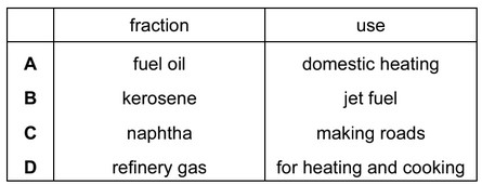 3. Kerosene (C) is incorrectly matched with lubricants – it’s actually used for jet fuel and heating.