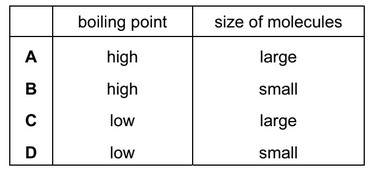Petroleum is separated into fractions via fractional distillation, which relies on differences in: