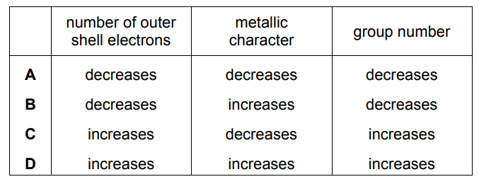 - C: Incorrect – Elements become less metallic (more non-metallic) across a period from left to right.