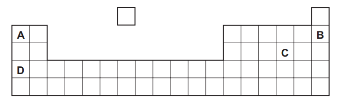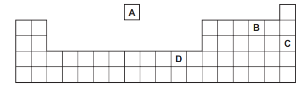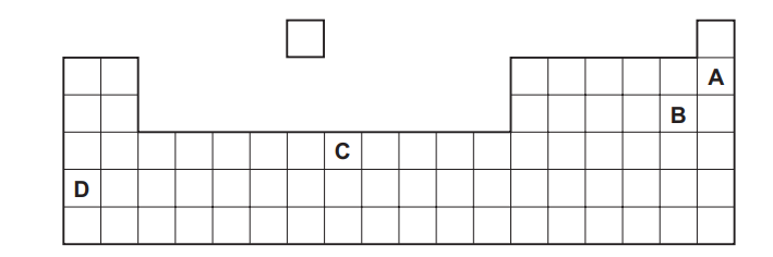 From the periodic table shown in the question (not visible in text), we can deduce: