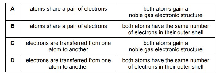 | A | Delocalised electrons can move freely through the structure. | Delocalised electrons can move freely through the structure. |
