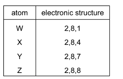 The table shows the electronic structure of four atoms.