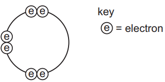 - by sharing two electrons with two electrons from another element to form four covalent bonds