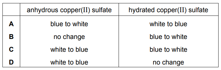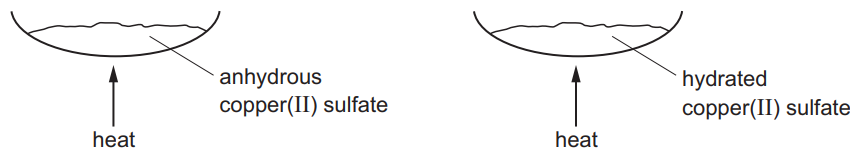 Separate samples of anhydrous copper(II) sulfate and hydrated copper(II) sulfate are heated.