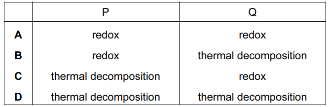 Equations P and Q represent two reactions which occur inside a blast furnace.