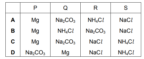 Therefore, the correct identification is A (Mg, Na₂CO₃, NH₄Cl, NaCl).