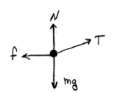 a. On the figure below, draw and label a free-body diagram showing all the forces on the block.
