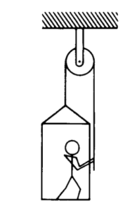 a. If the platform and the person are at rest, what is the tension in the rope?