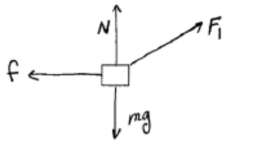 b. \(\sum \) Fy = 0; N + F1 sin θ – mg = 0 gives N = mg – F1 sin θ