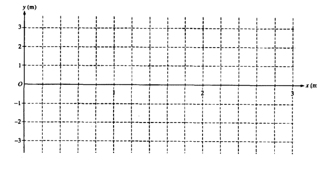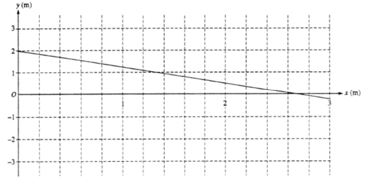 d. y = y0 + v0yt + ½ ayt2 = 2 m + ½ (–1.5 m/s2)t2 and x = x0 + v0xt + ½ axt2 = ½ (2 m/s2)t2, solving for t2 in the x equation gives t2 = x. Substituting into the y equation gives y as a function of x: y = 2 – 0.75x