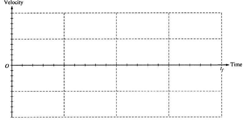 d. On the axes below, sketch a graph of velocity versus time for the upward and downward parts of the ball’s flight, where tf is the time at which the ball returns to the height from which it was thrown.