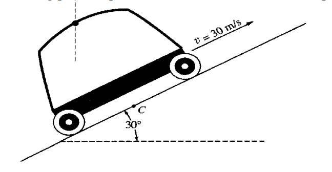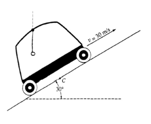 c. The car is at point C and is being pulled up the 30° incline with a constant speed of 30 m/s.