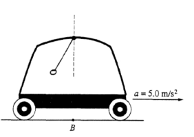 b. The car is at point B moving horizontally 2 to the right with an acceleration of 5.0 m/s .
