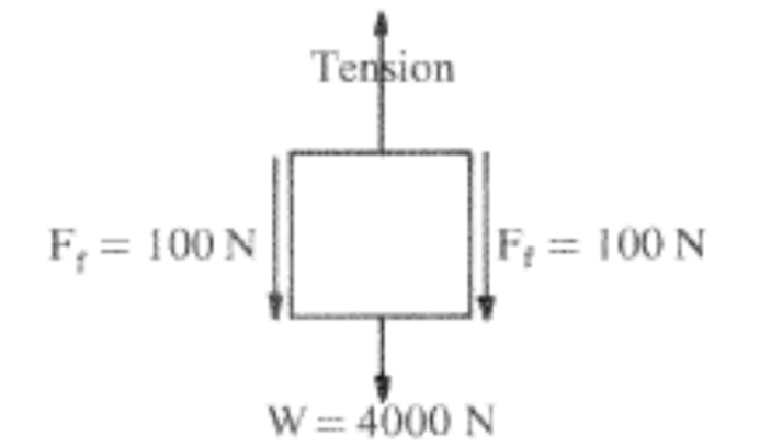 b. Calculate the tension in the cable lifting the 400-kilogram elevator car during an upward acceleration of 2m/sec2. (Assume g 10 m/sec2.)