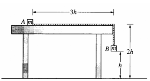 e. Since block B falls straight to the floor and stops, the distance between the landing points is equal to the horizontal distance block A lands from the edge of the table. The speed with which block A leaves the tabletop is the speed with which block B landed, which is found from v = v0 + at = \(\frac{g}{h}\) \(\left ( 2|\frac{\bar{h}}{g} \right )\) = \(\sqrt{hg}\) and the time for block A to reach the floor is found from 2h = ½ gt2, which gives t = \(2|\frac{\bar{h}}{g}\) The distance is now d = vt = \(\sqrt{hg}\) × \(2|\frac{\bar{h}}{g}\) = 2h