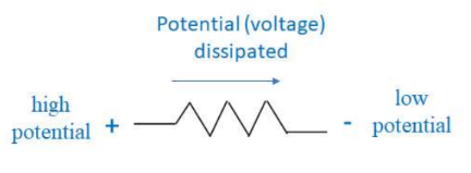$\mathrm{I}$ – current though element $\Delta \mathrm{V}=V_{\text {out }}-\Delta V_{\text {in }}:$ potential difference across element (measured in Volts, V) $R$ – resistance through element