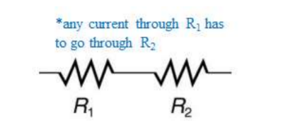 - When two elements are in series, they are connected end to end so that there is only one way for current to flow. When resistors are in series, current has to pass through both resistors.