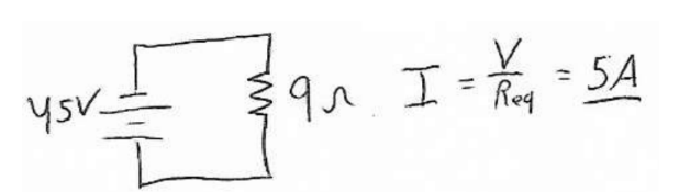 *The current is found using Ohm’s Law ( $\mathrm{I}=\mathrm{V} / \mathrm{R})$. The calculate currents $(2+3)$ add up to $5 \mathrm{~A}$, satisfying Kirchoff’s Node Law.