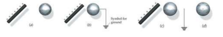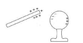 (b) Bring the ebonite rod close to, but not touching, the electroscope knob. Ground the electroscope. Break the ground connection. Move the rod away.