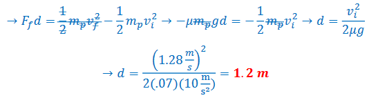 Part 2: Apply the work–energy theorem to find the distance Putin travels while friction slows him down.