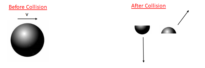Ans: There is no free–body diagram for collisions, but drawing a before and after can be useful is setting up the problem and determine the signs of each velocity vector.