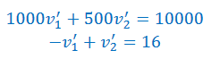 Solve using your favorite solver: 𝒗′1 = 𝟏. 𝟑𝟑 𝒎/𝒔 𝒗’𝟐 = 𝟏𝟕. 𝟑𝟑 𝒎/𝒔