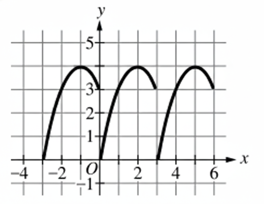 In option (C), the function starts a cycle at $x = 0$ and begins the next identical cycle at $x = 3$.