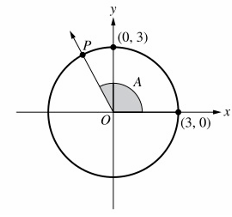 The circle passes through $(3, 0)$ and $(0, 3)$, so its radius $r$ is $3$.
