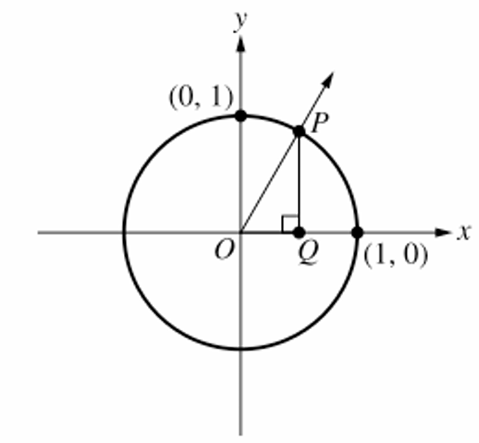 On a unit circle, the cosine of an angle corresponds to the $x$-coordinate of point $P$.