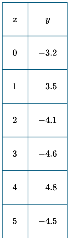 Calculate the value: $f(6) \approx 0.811 \sin(6.016) – 4.024 \approx -3.879$.