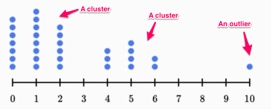 Report unusual observations (extremely high or low values) or clusters separated by gaps.