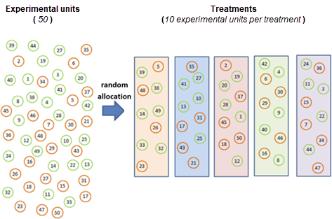 - Example: Randomly assigning 100 identical plants to two fertilizers.