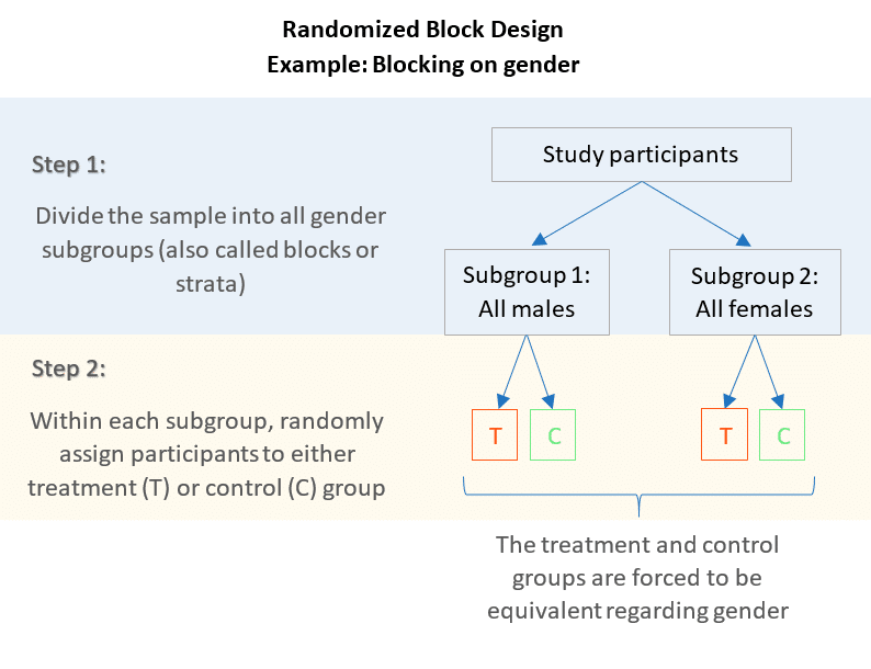 - Example: Blocking patients by gender in a drug trial before random assignment.