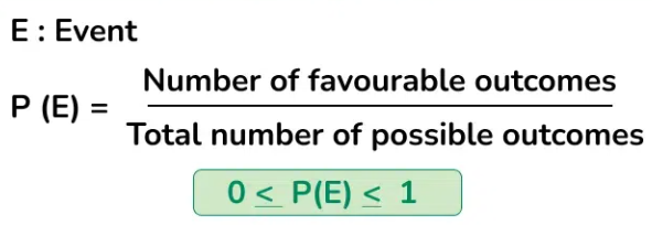 | Sample Space (S) | All possible outcomes of a chance experiment | Rolling a die: {1,2,3,4,5,6} |
