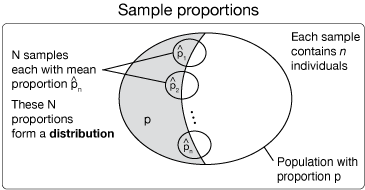 A sample proportion (\(\hat{p}\)) is the fraction of individuals in a sample that have a certain characteristic. It is calculated as: