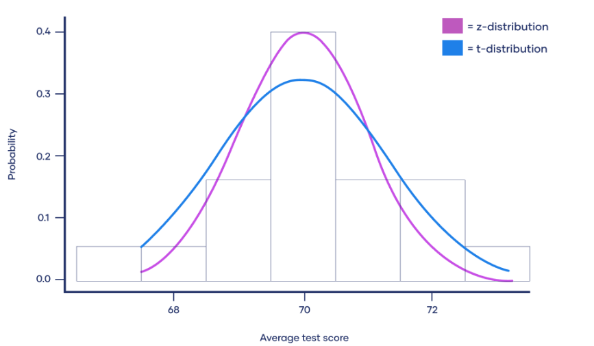 - Degrees of freedom (df): The exact shape depends on \(df = n – 1\) for a sample of size \(n\). Smaller \(df\) = thicker tails.