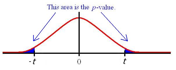 - If the alternative hypothesis is two-sided (\(H_a: \mu_1 – \mu_2 \ne 0\)), the p-value is the probability of observing a t-value as far from 0 (in both directions) as the calculated t-statistic.