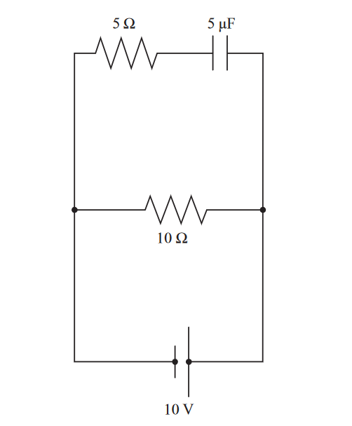 (ii) Initially, the 10 volts of the capactor will be driving current through an equivalent resistance of 15 ohms (5 + 10 in series):