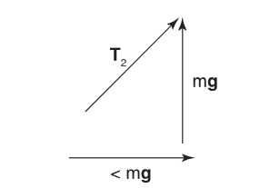 85 degrees). Therefore, the horizontal component of tension must be less than mg. The horizontal rope T must cancel this horizontal component of \(T_2\)