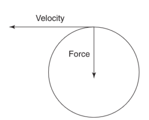 Ans:(C) The bucket will fly out horizontally initially. Objects executing circulation motion have velocity vectors tangent to their motion while experiencing an inward acceleration. If the inward force is released, Newton’s first law dictates the object follow its velocity vector. Note that gravity will cause the object to fall after it is released, but the initial motion is horizontal.