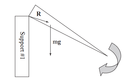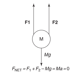 T < mg. Since the mass is stationary, we conclude that the net force is zero. The upward tension of the angled rope must be mg in order to cancel out gravity. The free-body diagram on the hanging mass is: