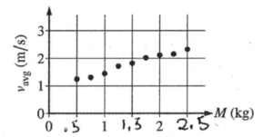 i. To test the equation, the student rolls a cart down the long track with speed bumps many times in front of a motion detector. The student varies the mass M of the cart with each trial but keeps everything else the same. The graph shown below is the student’s plot of the data for vavg as a function of M.