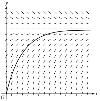 (a) A portion of the slope field for the differential equation \(\frac{dy}{dt}=\frac{12-y}{3}\) is given below. Sketch the solution curve through the point (0, 0).