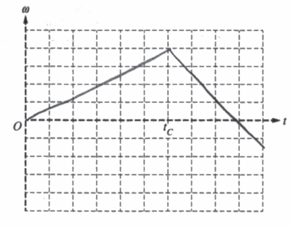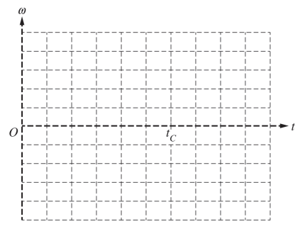 (c) On the axes below, sketch a graph of the angular velocity ω of the system consisting of the two pulleys as a function of time t. Include the entire time interval shown. The pulleys are released at t = 0, and the string is cut at t = tC.