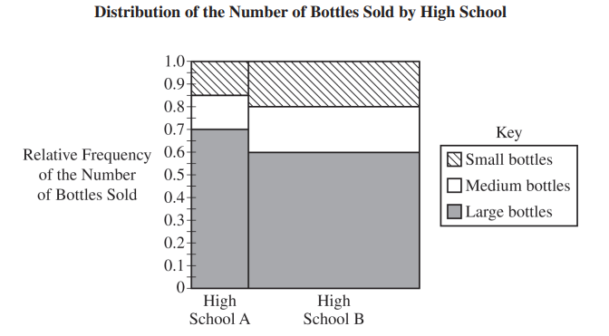 (i) Which of the two high schools sold a greater proportion of large bottles? Justify your answer.